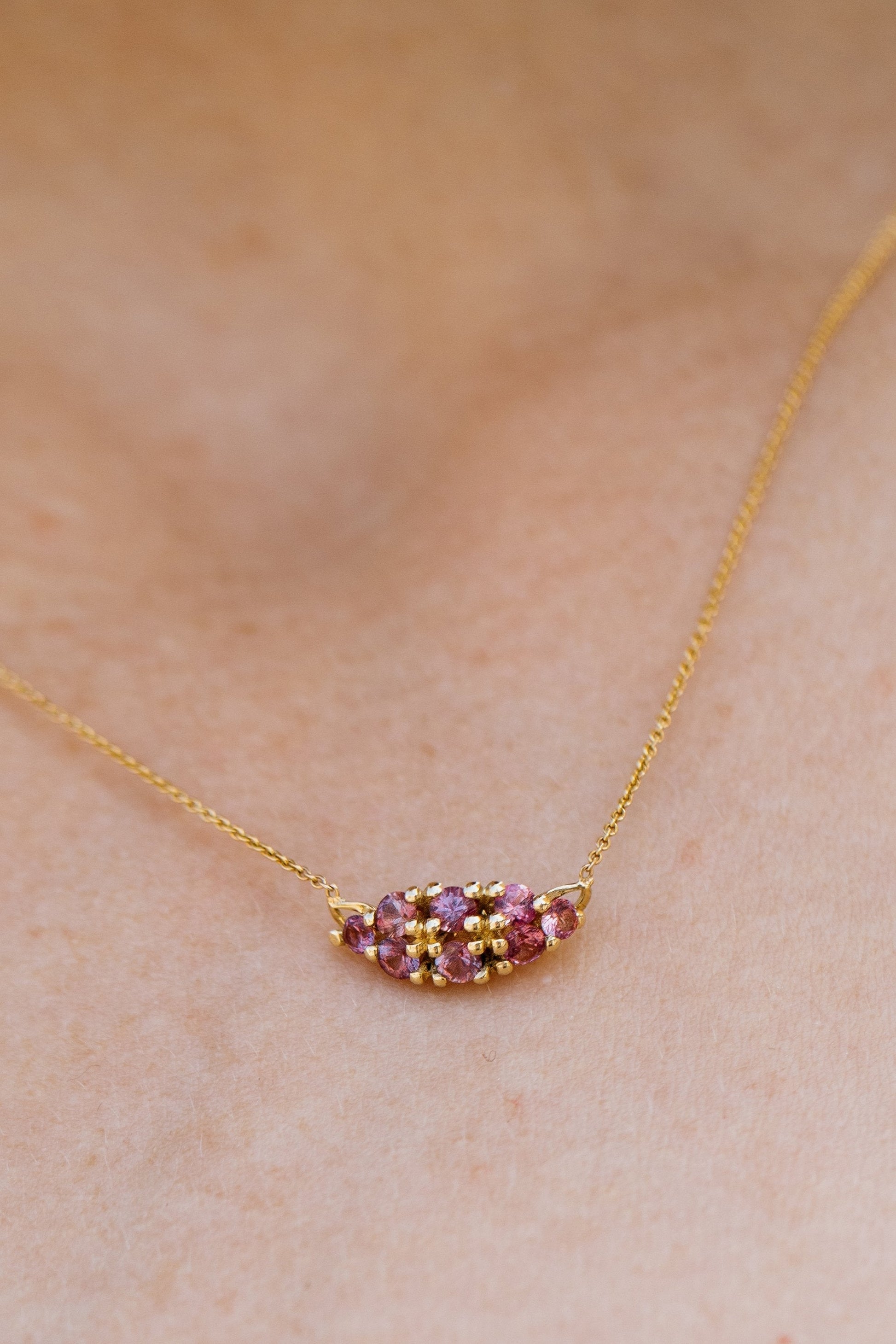 Orchid necklace, made of gold inlaid with pink sapphires.